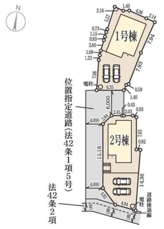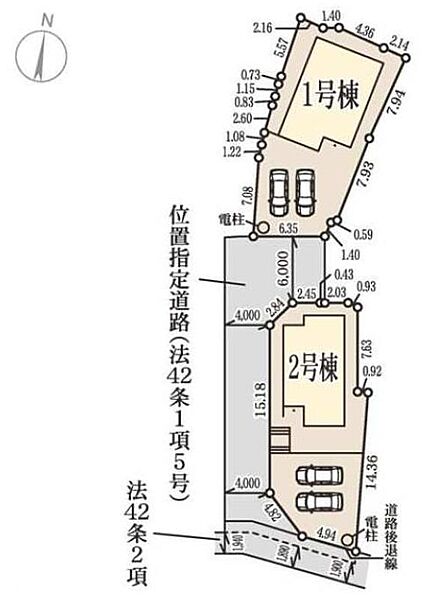 | 駐車場 | 2台 | 道路の幅員 | 道路幅:2.2m、アスファルト舗装、南側2.2m公道、中央側4m位置指定道路 |