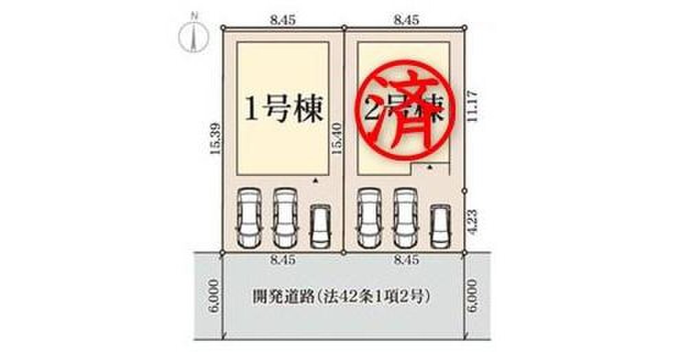 | 駐車場 | 3台 | 道路の幅員 | 道路幅:6m、アスファルト舗装、南側6m公道 |