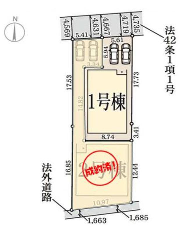 | 駐車場 | 2台(車種による) | 道路の幅員 | 道路幅:4.4m、アスファルト舗装、北側4.42m公道 |