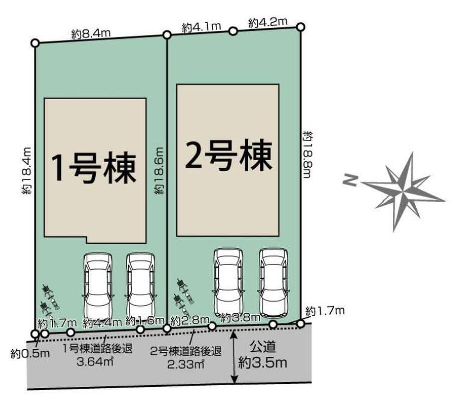 | 駐車場 | 2台 | 道路の幅員 | 道路幅:3.5m、アスファルト舗装、西側3.5m公道 |