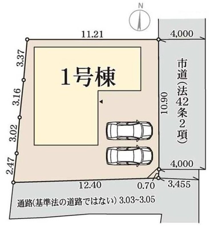| 駐車場 | 2台 | 道路の幅員 | 道路幅:4m、アスファルト舗装、東側4m公道 |