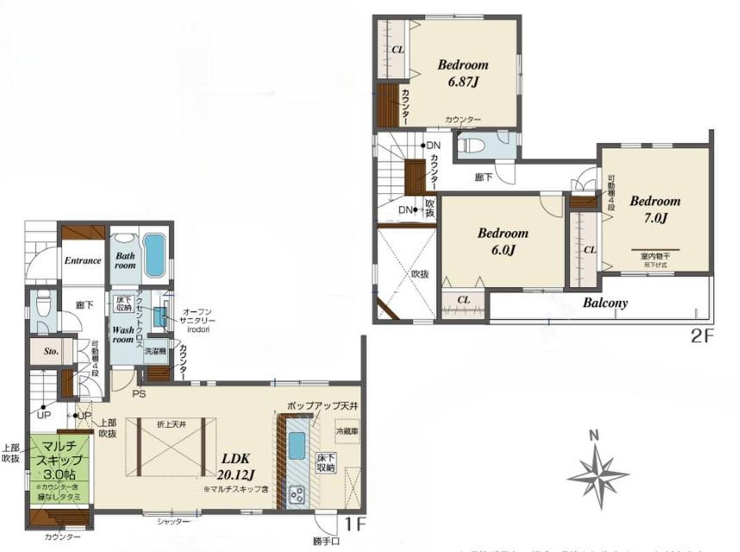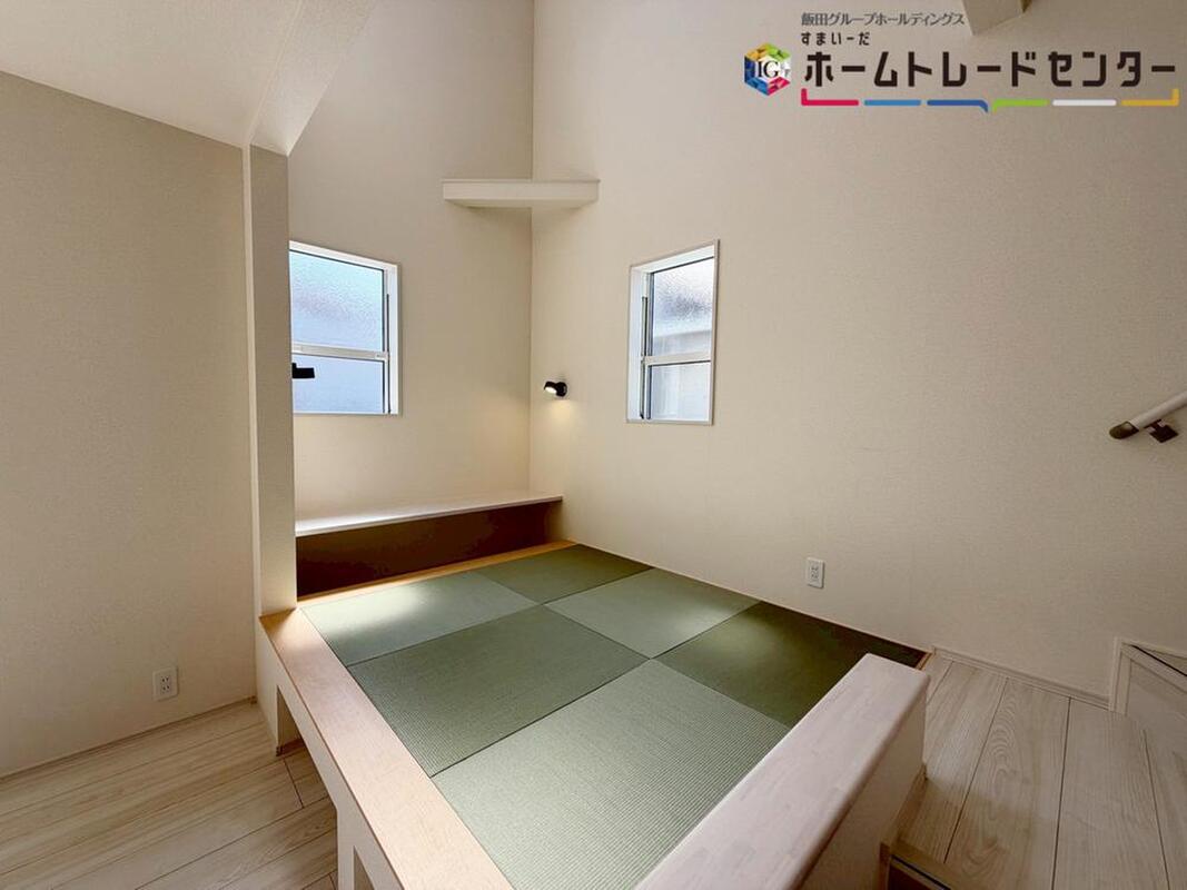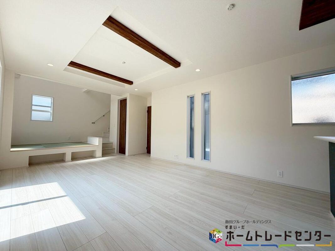 LDK横のマルチスキップの「タタミコーナー」は、吹抜けです♪天井が高くなり開放感が生まれるとともに、部屋全体が広く見え「余白」が生まれるのでオシャレな空間になります。