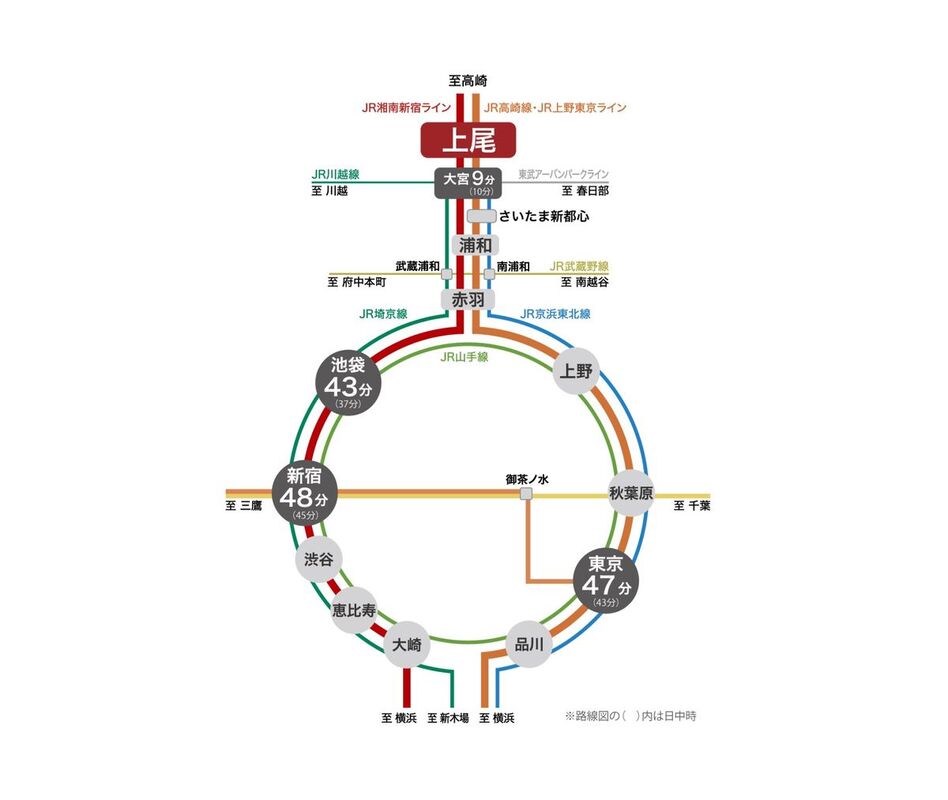 - 湘南新宿ライン高海「上尾」駅 東武バス「一丁目」バス乗車26分 徒歩4分