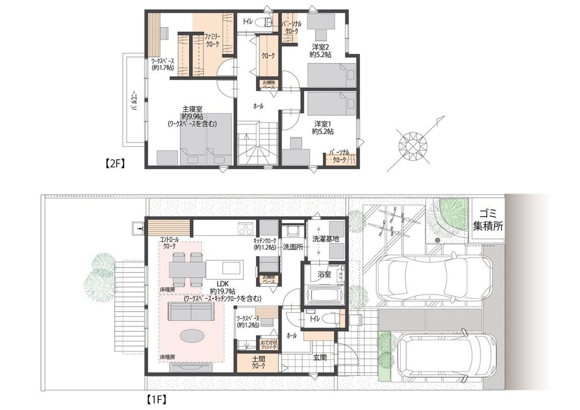 - ※完成予想図やCG合成画像は、門塀・植栽・庭・外観等、実際とは多少異なる場合があります。