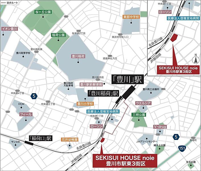 名鉄豊川線「豊川稲荷」駅 徒歩7分~7分 JR飯田線「豊川」駅 徒歩7分~8分 |