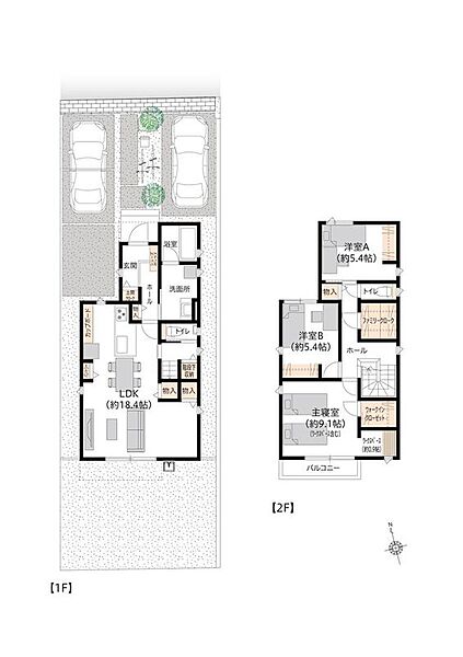 | 建物面積 | 104.33m2~104.75m2 | 土地面積 | 160.37m2~180.90m2 |