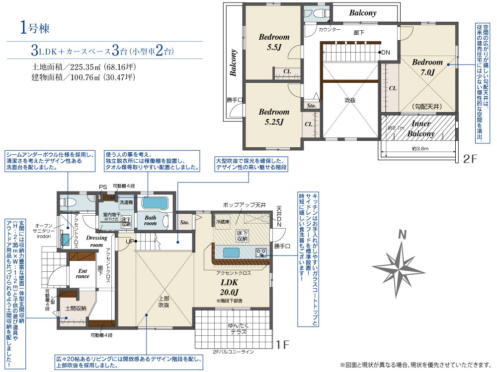 | 建物面積 | 100.76m2(約30.47坪) | 土地面積 | 225.35m2(約68.16坪) |