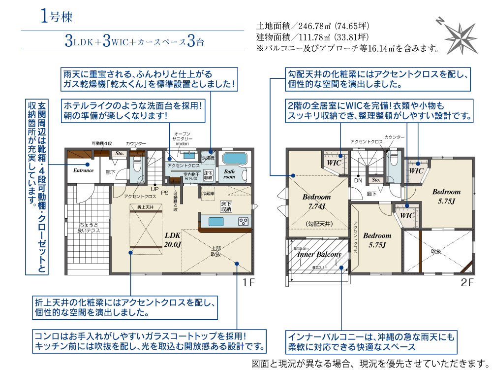| 建物面積 | 111.78m2(約33.81坪) | 土地面積 | 246.78m2(約74.65坪) |
