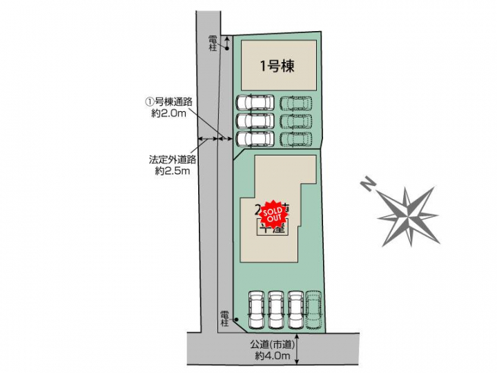 | 駐車場 | 3台 | 道路の幅員 | 南西4.0m公道(市道) |