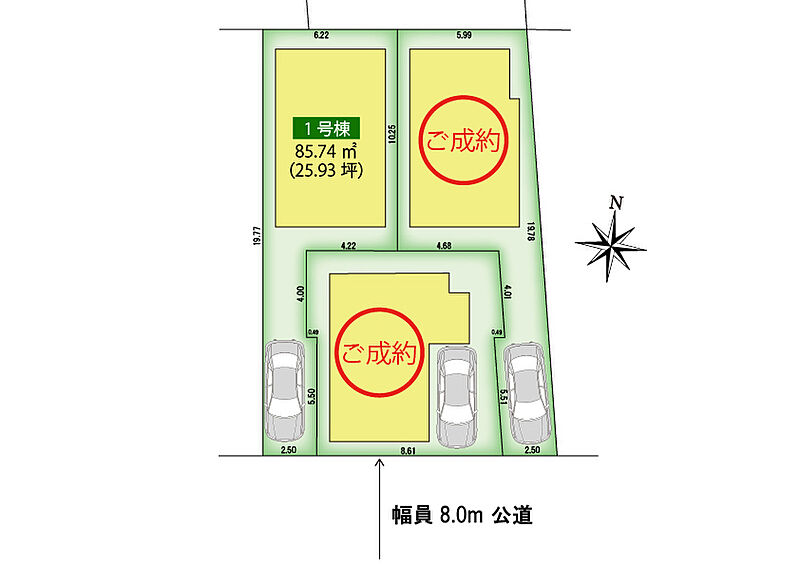 | 駐車場 | 1台 ~ 2台 | 道路の幅員 | 南側8.0m公道 |