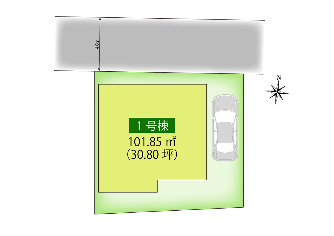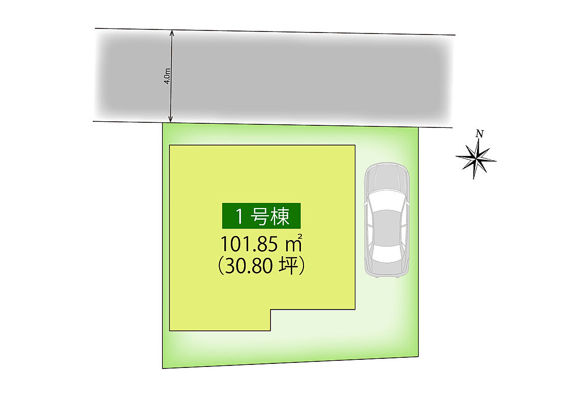 | 駐車場 | 1台 | 道路の幅員 | 北側 約4m |