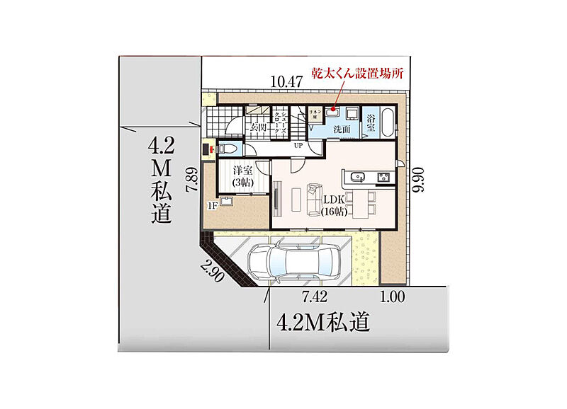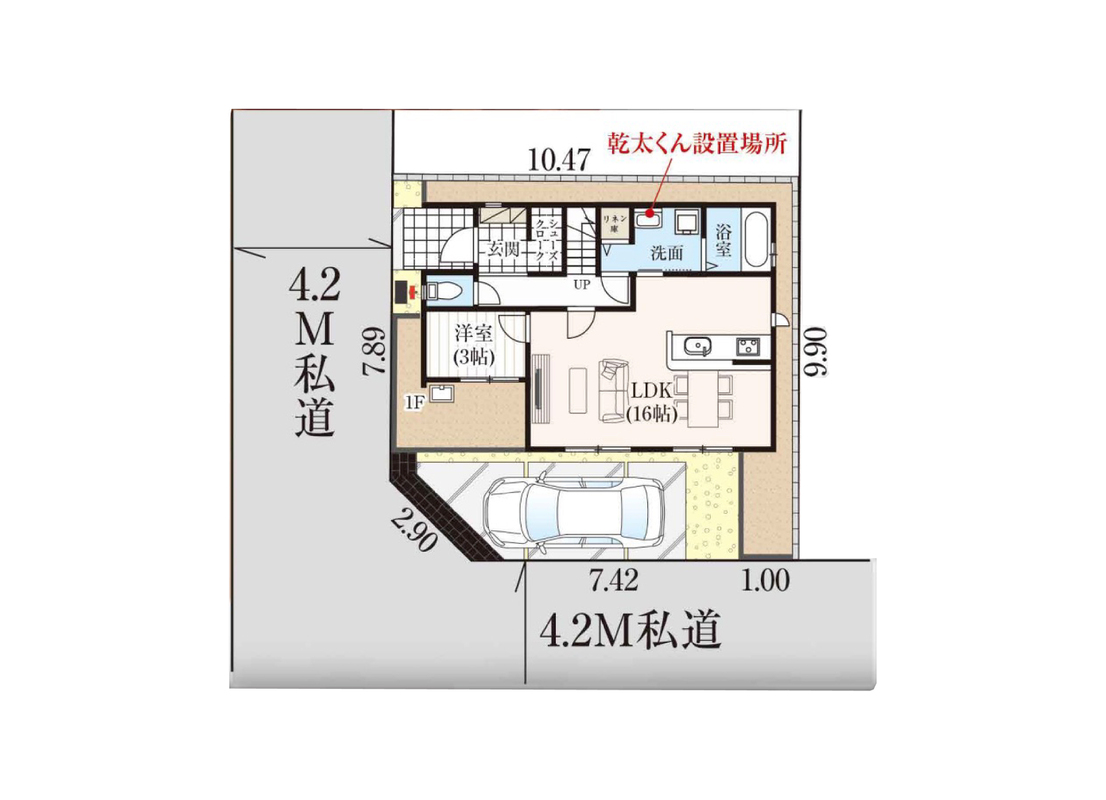 | 駐車場 | 1台 | 道路の幅員 | 4.2m |