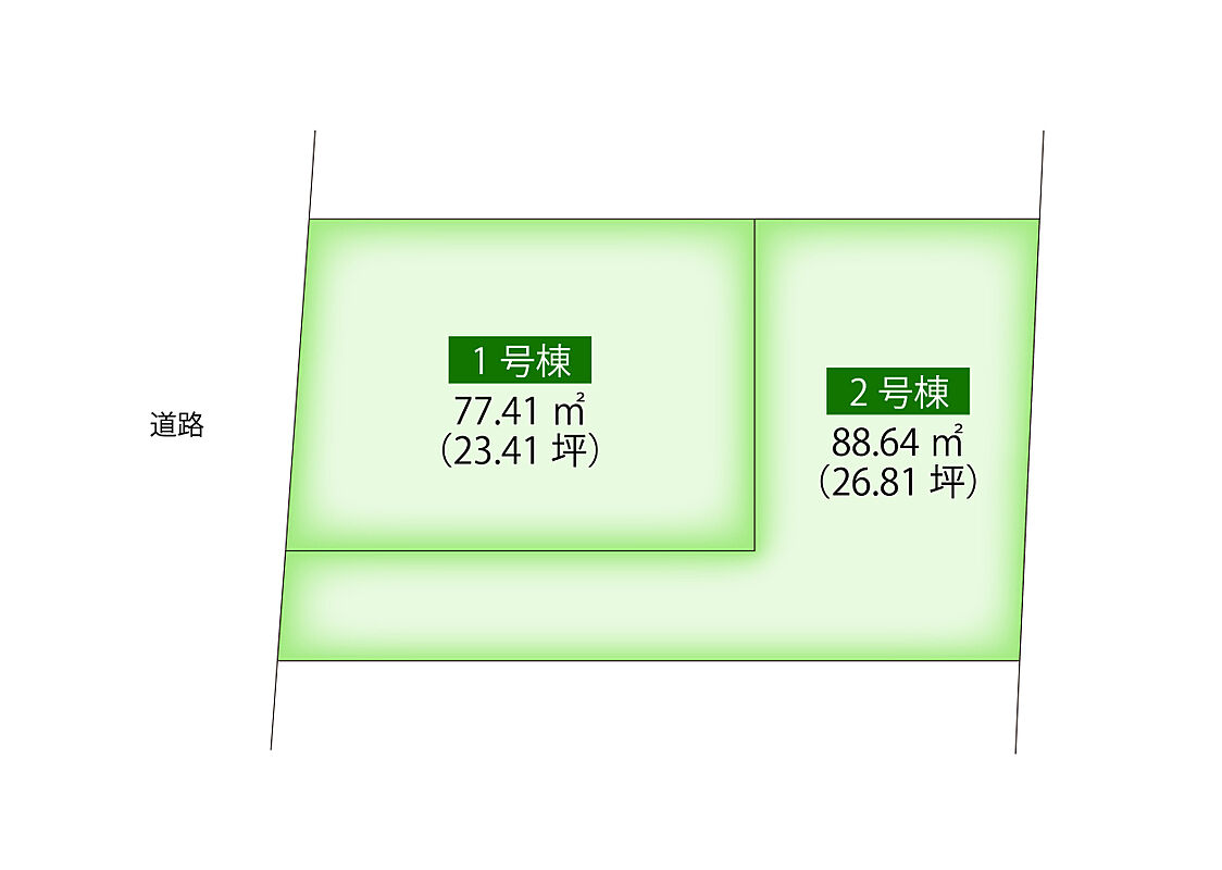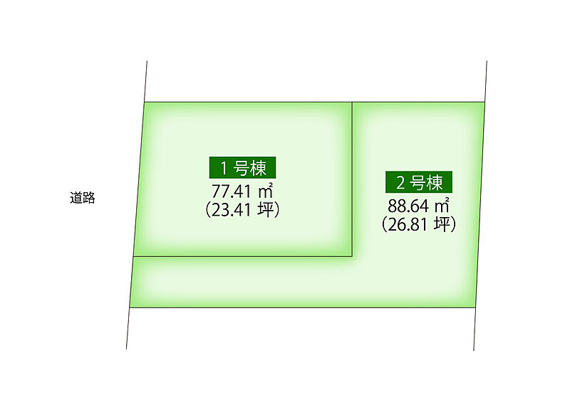 | 建物面積 | 76.7m2~78.92m2 | 土地面積 | 77.41m2~88.64m2 |