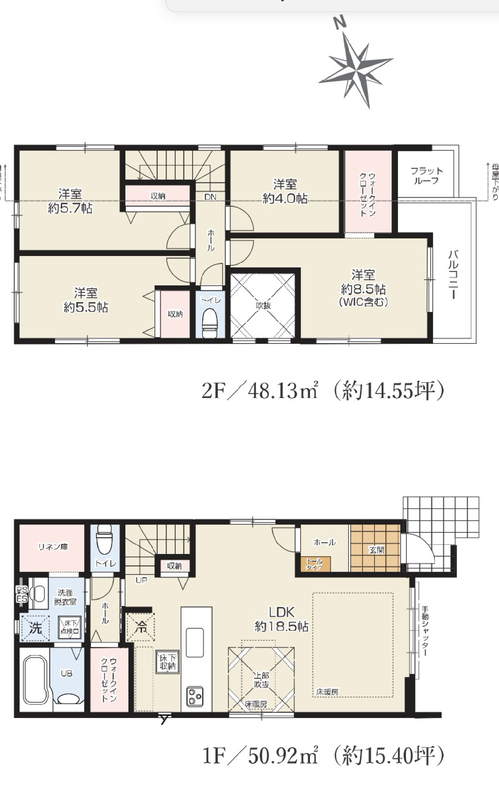 2号棟 間取り 4LDK 価格 4799万円 建物面積 95.53m2 土地面積 93.83m2 -