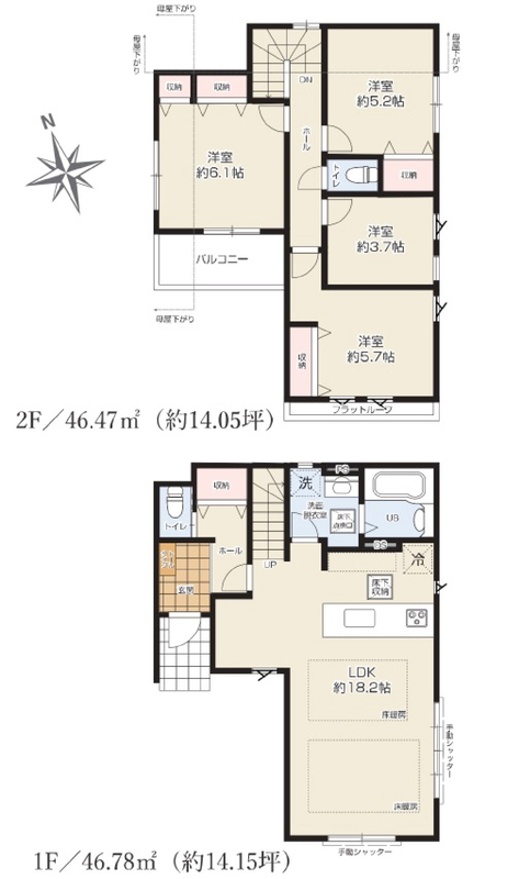 | 建物面積 | 93.25m2~99.05m2 | 土地面積 | 93.64m2~101.19m2 |