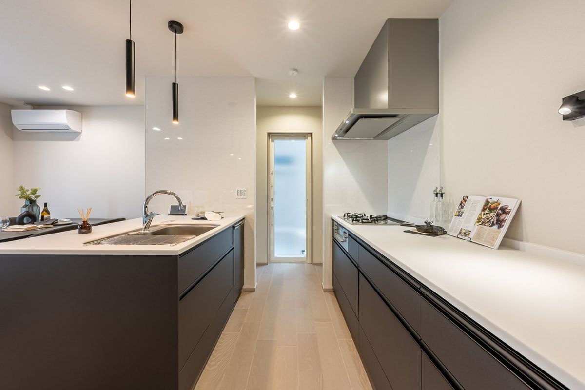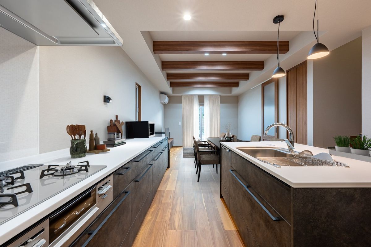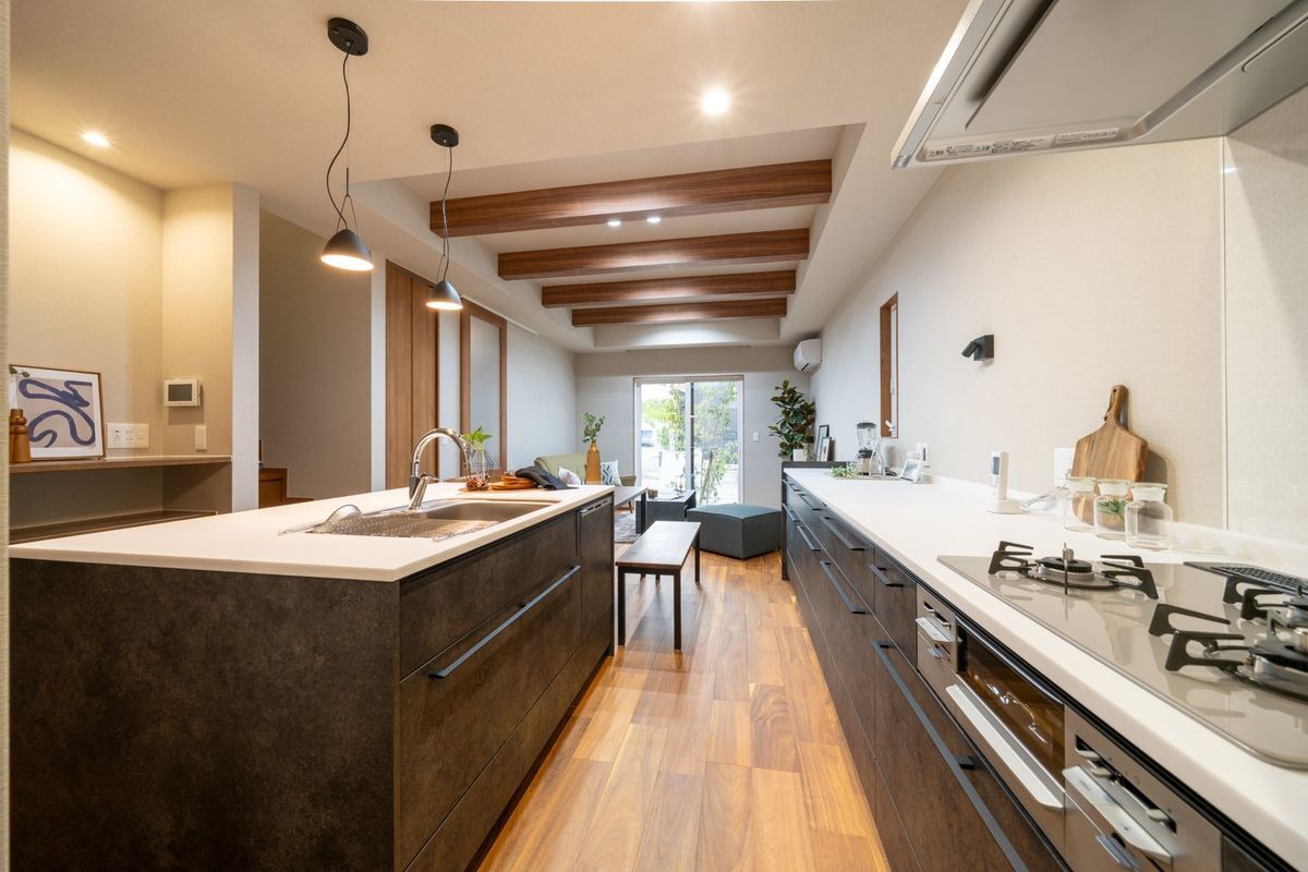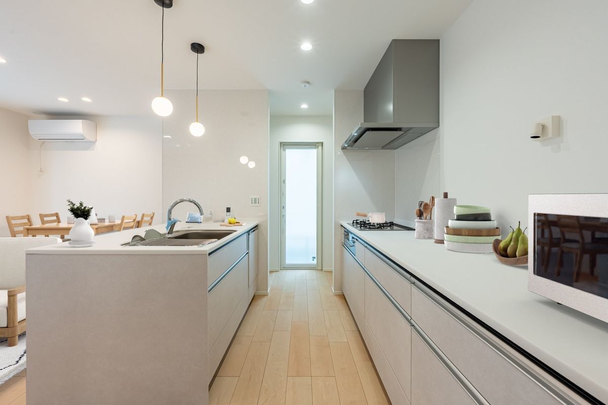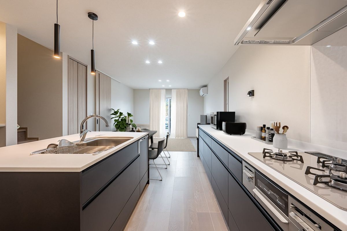 ファミリークローク、キッチンクローク、土間クロークなど収納充実リビングを見渡せるカウンターキッチンで家族間のコミュニケーションが自然と増えます