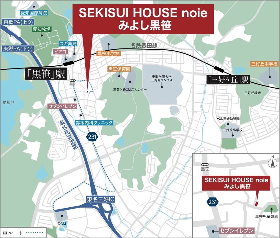 名鉄豊田線「黒笹」駅 徒歩7分 名鉄豊田線「三好ケ丘」駅 徒歩24分 |