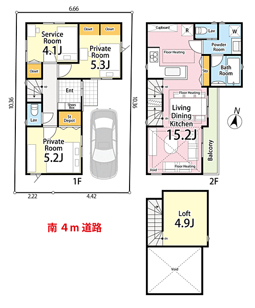 | 駐車場 | 1台 | 道路の幅員 | 南側 道路 幅員約4m |