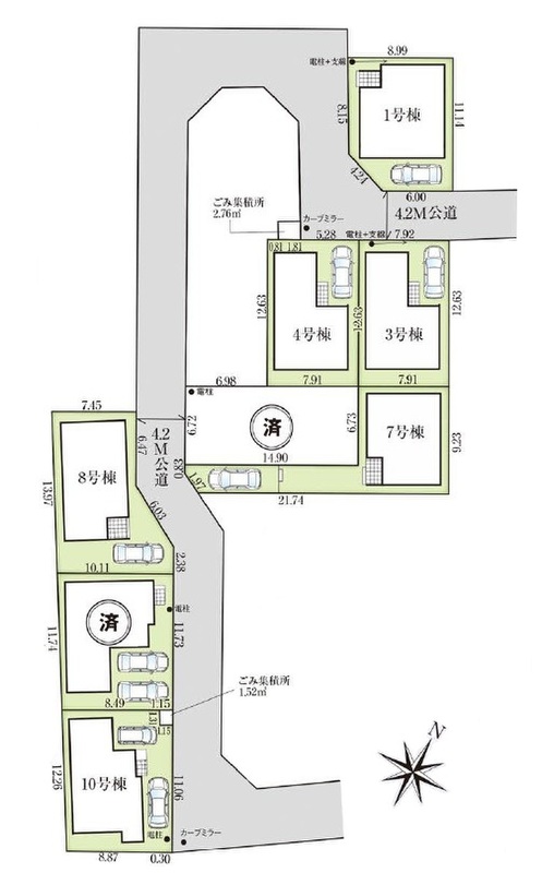 | 建物面積 | 92.11m2(7号棟)~99.36m2(1号棟) | 土地面積 | 95.79m2(1号棟)~116.03m2(8、9号棟) |