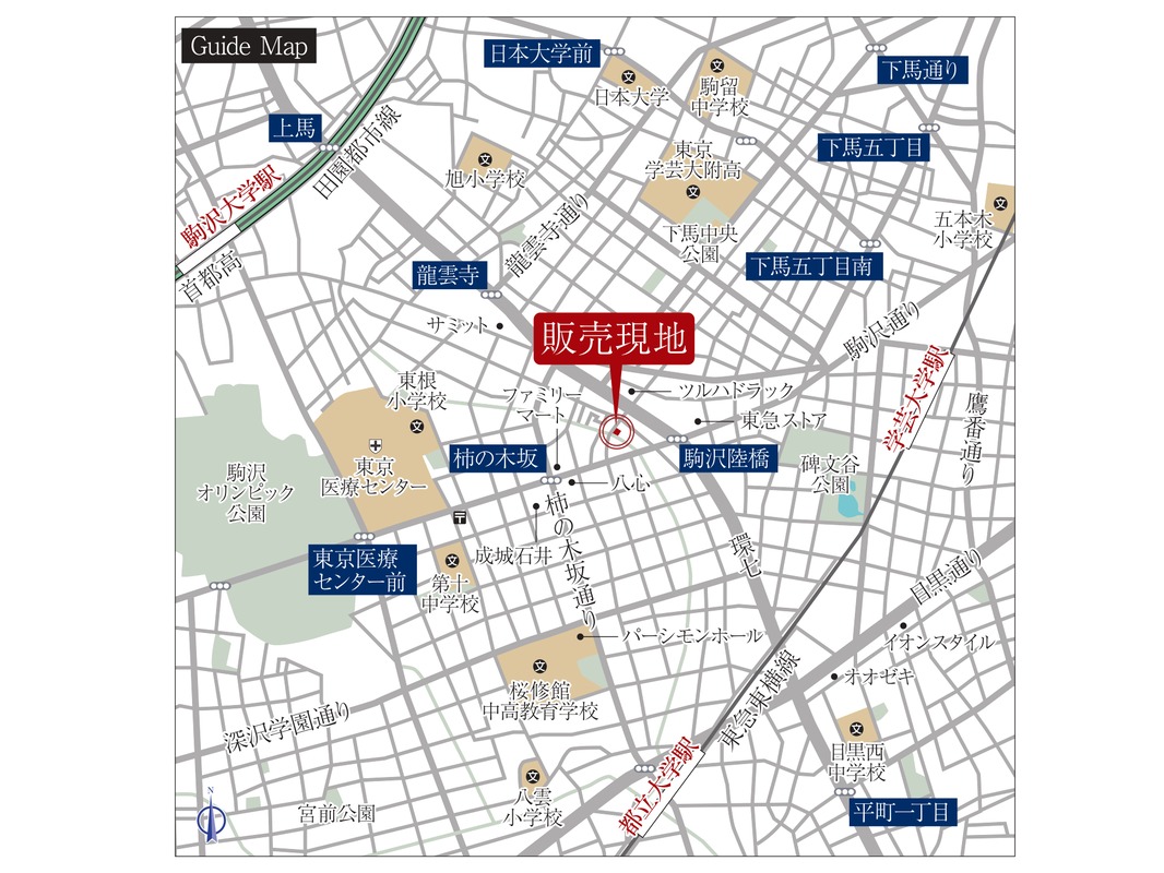 東急東横線「学芸大学」駅 徒歩14分 東急東横線「都立大学」駅 徒歩16分 東急田園都市線「駒沢大学」駅 徒歩19分 |