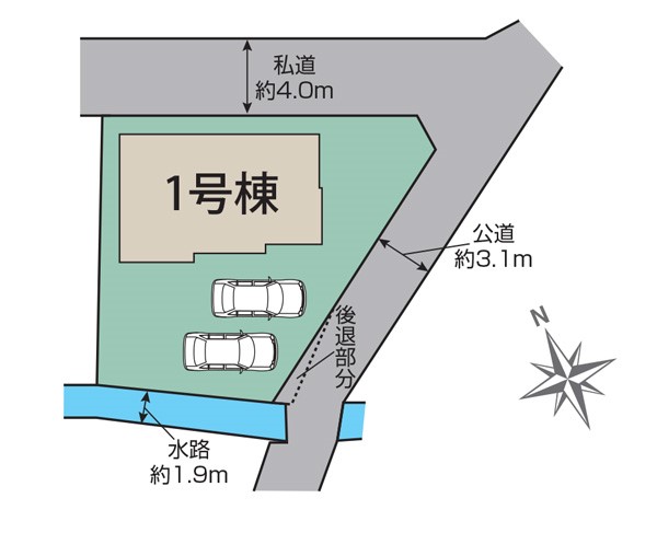 | 駐車場 | 2台 | 道路の幅員 | :東3.1m 北4m |