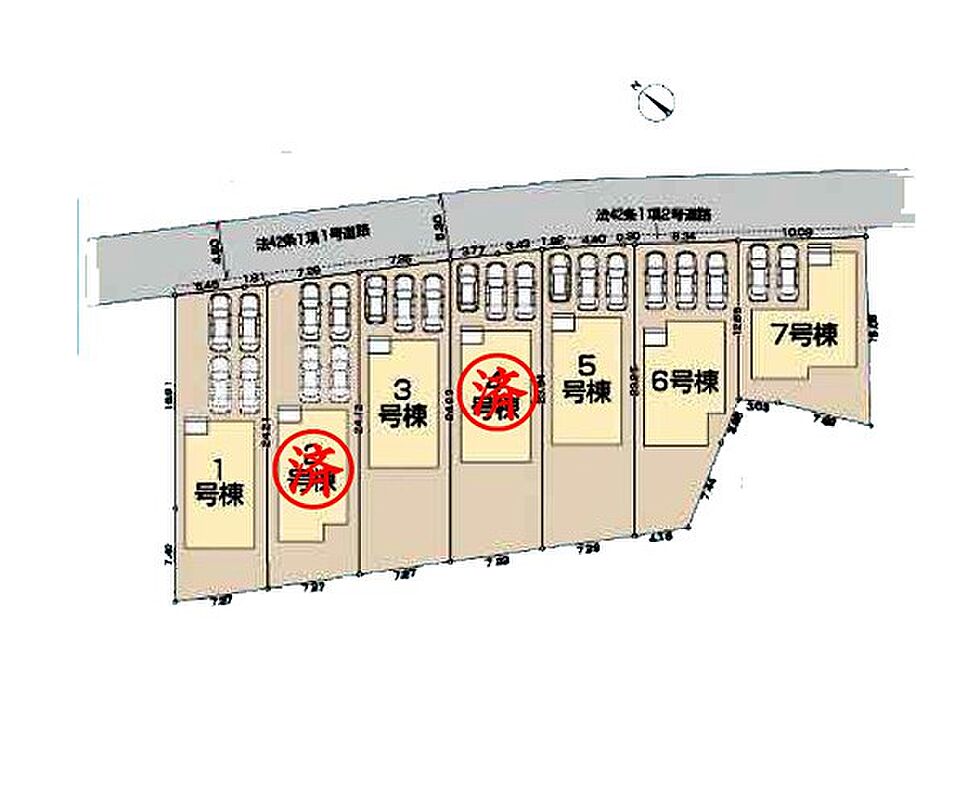 | 駐車場 | 4台 | 道路の幅員 | 6号棟:北東5.3m /5号棟:北東5.3m /1号棟:北東5.3m |