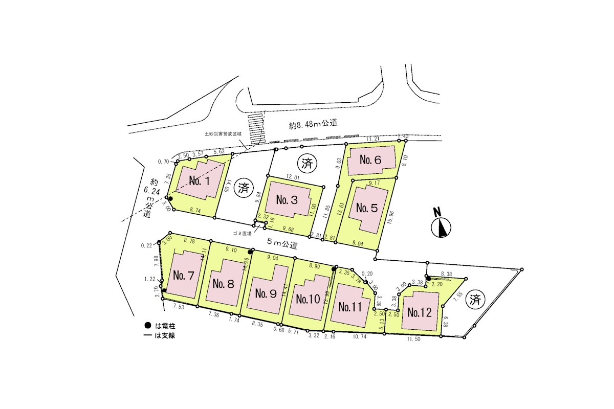 | 駐車場 | - | 道路の幅員 | 7号棟:北5m 西6.2m /3号棟:南5m /6号棟:南5m 北8.5m /1号棟:南5m 西6.2m 北8.5m |