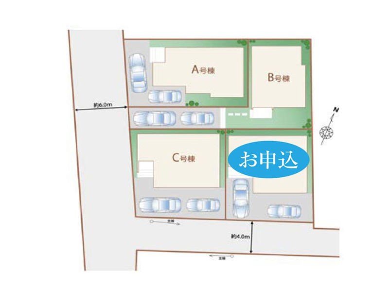 | 駐車場 | 2台 | 道路の幅員 | C号棟:西6m 南4m /B号棟:西6m |