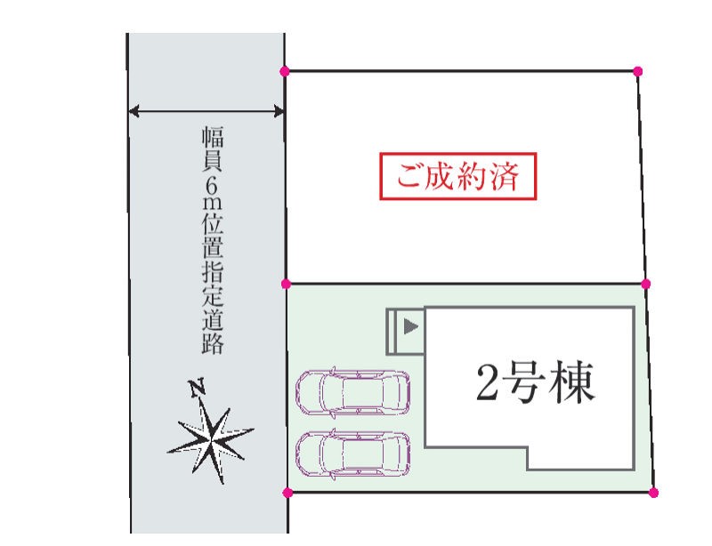 | 駐車場 | 2台 | 道路の幅員 | 2号棟:西6m |