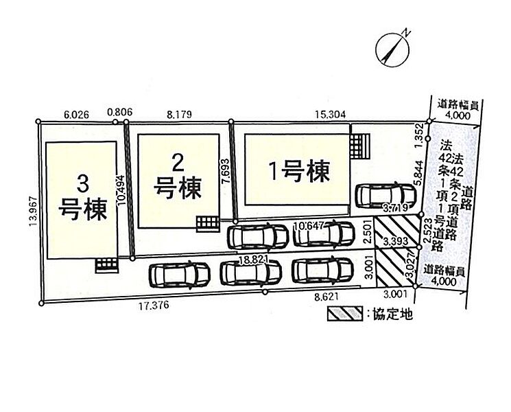 | 駐車場 | 1台 ~ 2台 | 道路の幅員 | 1号棟:北東3.8m /2号棟:北東3.8m |