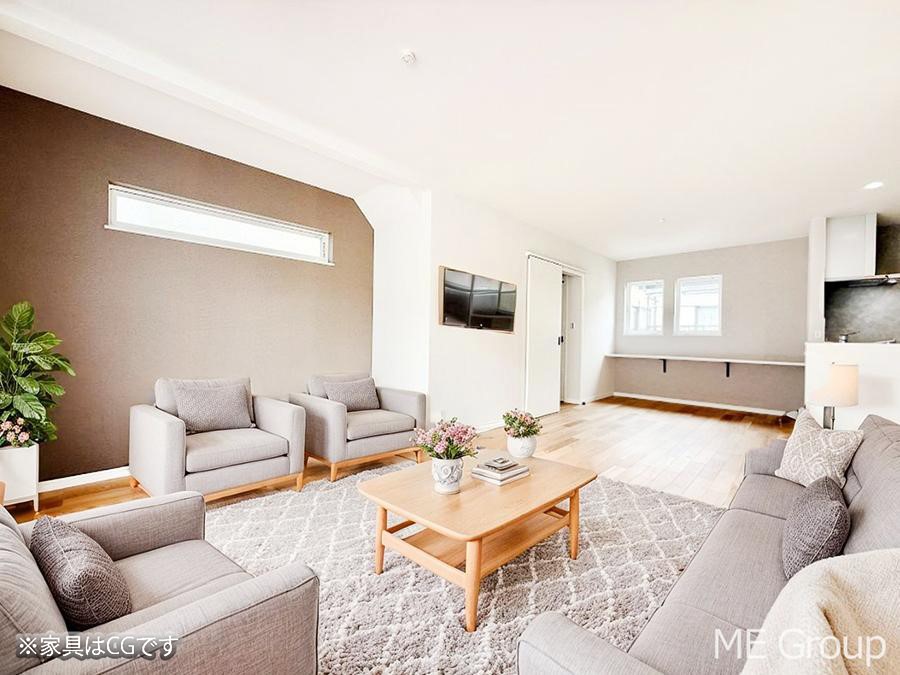 - ※完成予想図やCG合成画像は、門塀・植栽・庭・外観等、実際とは多少異なる場合があります。