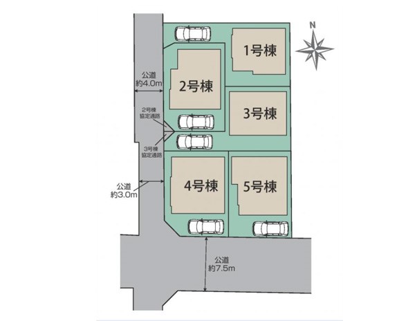 | 駐車場 | 1台 | 道路の幅員 | 3号棟:西4m |