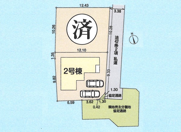 | 駐車場 | 2台 | 道路の幅員 | 2号棟:東3.3m |