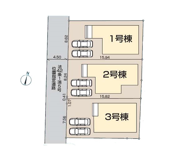 | 駐車場 | 2台 | 道路の幅員 | 2号棟:南西4.5m /1号棟:南西4.5m |