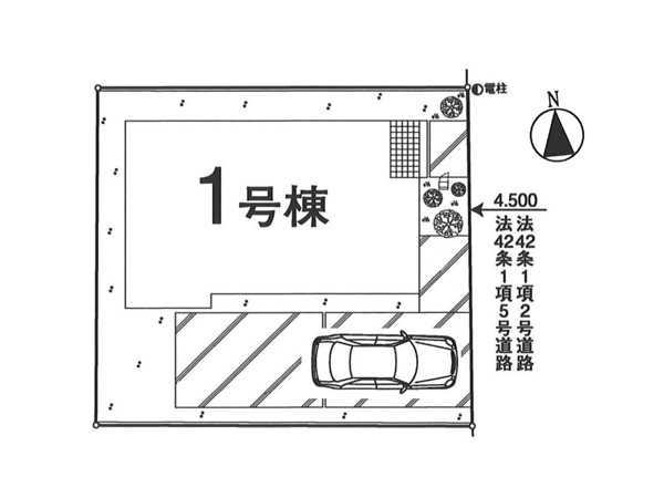 | 駐車場 | 1台 | 道路の幅員 | 1号棟:東4.5m |