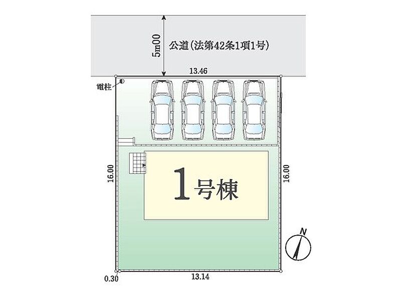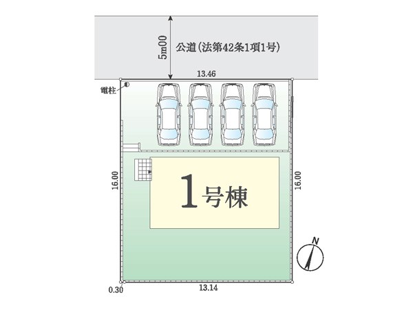 | 駐車場 | 4台 | 道路の幅員 | :北5m |