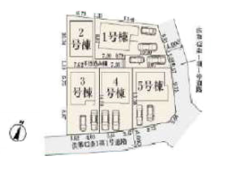 | 駐車場 | 2台 | 道路の幅員 | 3号棟:南4m /5号棟:南4m 東4m /4号棟:南4m |
