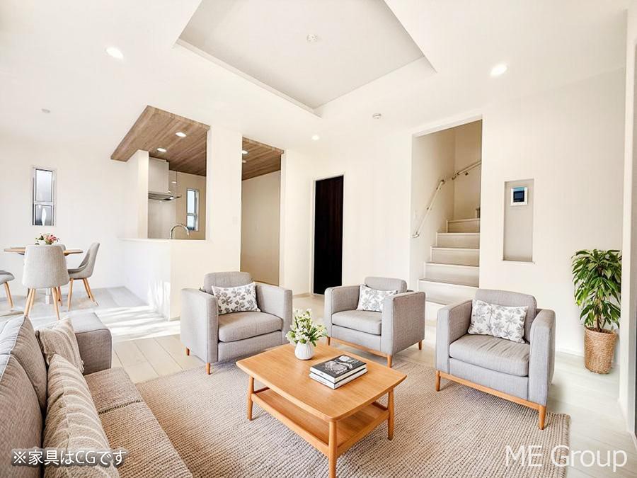 - ※完成予想図やCG合成画像は、門塀・植栽・庭・外観等、実際とは多少異なる場合があります。