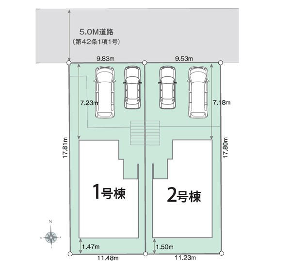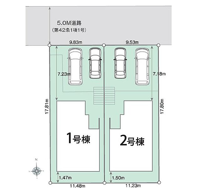 | 駐車場 | 2台 | 道路の幅員 | 2号棟:北5m |