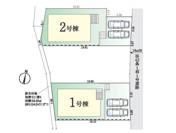 | 駐車場 | 2台 | 道路の幅員 | 1号棟:東16m /2号棟:東16m |