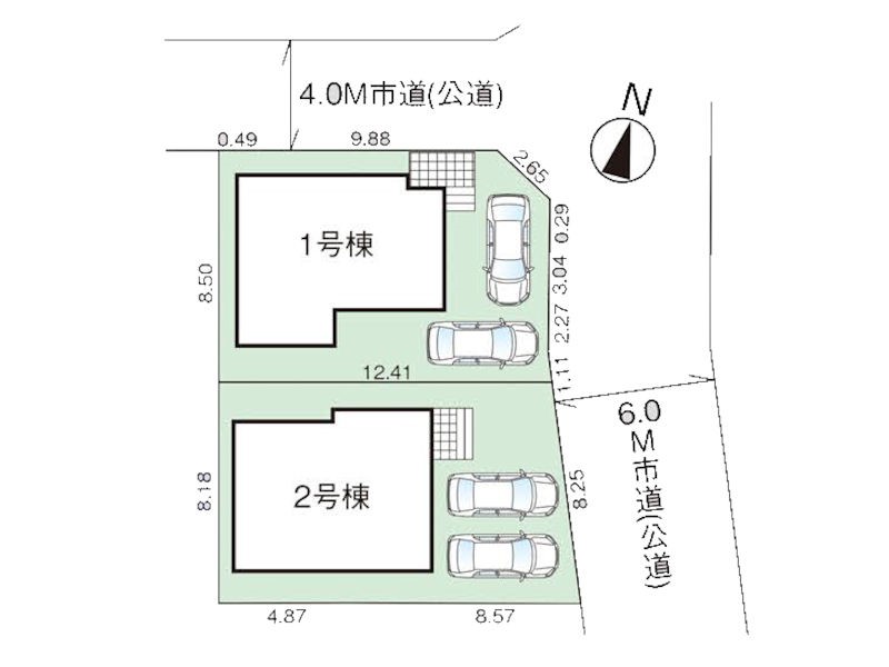 | 駐車場 | 2台 | 道路の幅員 | 1号棟:東6m 北4m |