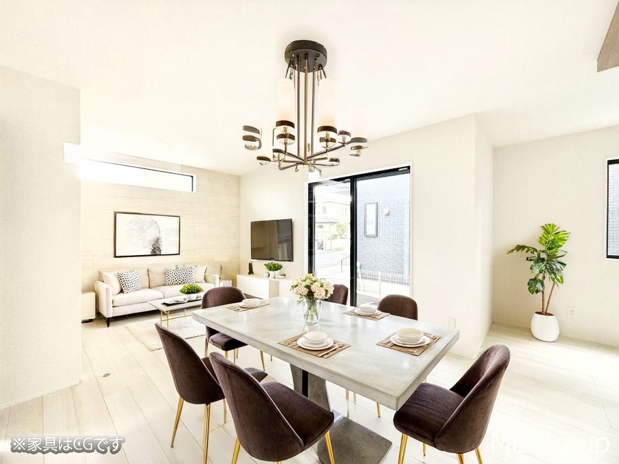 - ※完成予想図やCG合成画像は、門塀・植栽・庭・外観等、実際とは多少異なる場合があります。