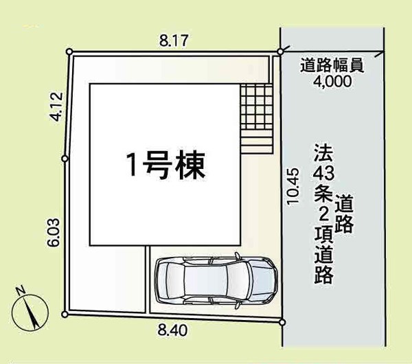 | 駐車場 | 1台 | 道路の幅員 | :南東4m |