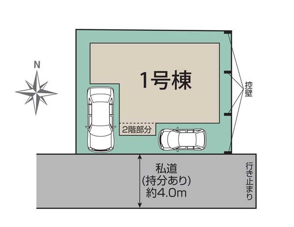 | 駐車場 | 2台 | 道路の幅員 | :南4m |