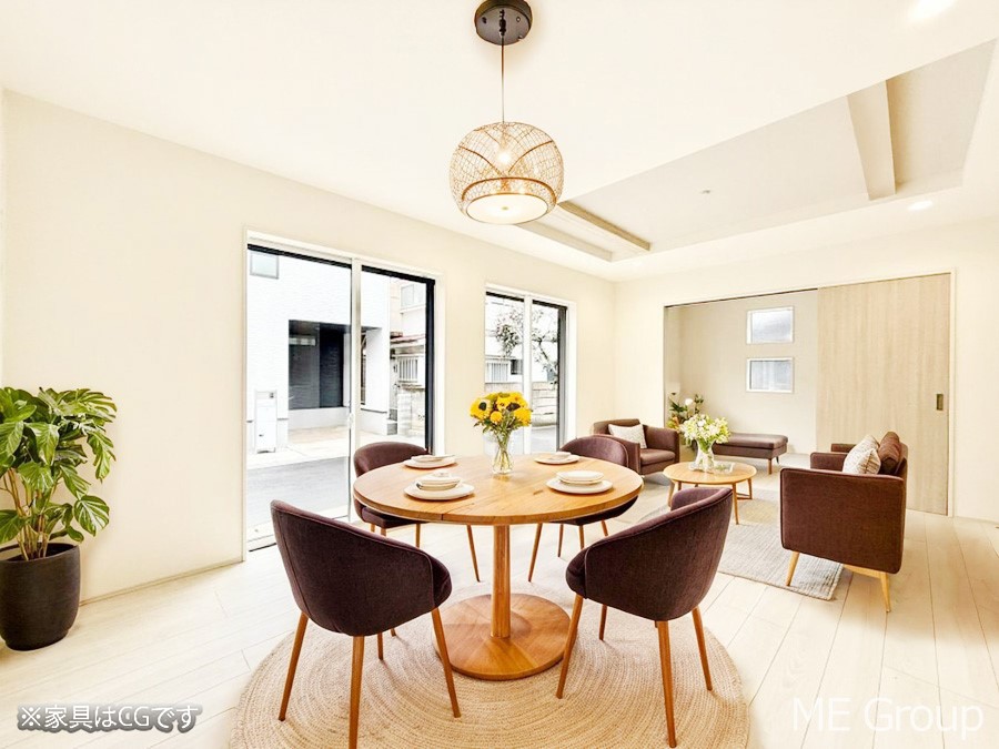 - ※完成予想図やCG合成画像は、門塀・植栽・庭・外観等、実際とは多少異なる場合があります。