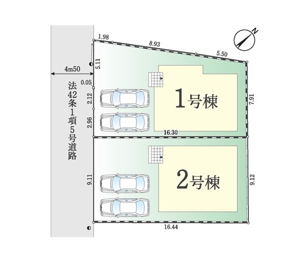 | 駐車場 | 2台 | 道路の幅員 | 2号棟:南西4.5m /1号棟:南西4.5m |