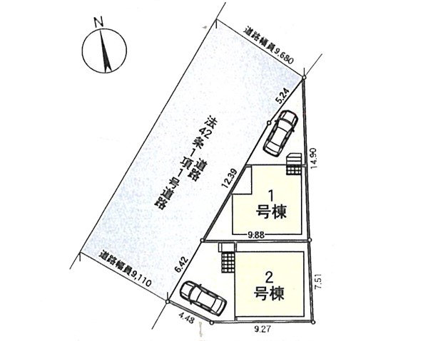 | 駐車場 | 1台 | 道路の幅員 | 1号棟:西9.1m |