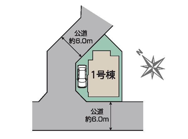 | 駐車場 | 1台 | 道路の幅員 | 1号棟:北東6m 南西6m |