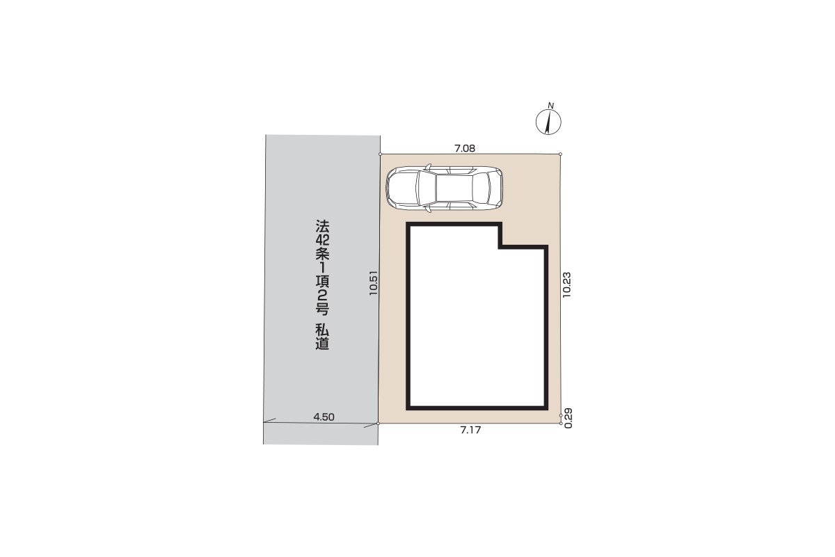 | 駐車場 | 1台 | 道路の幅員 | 1号棟:西4.5m |
