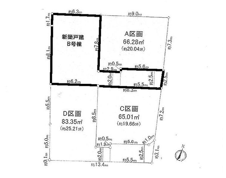 | 駐車場 | 1台 | 道路の幅員 | B号棟:東4m |
